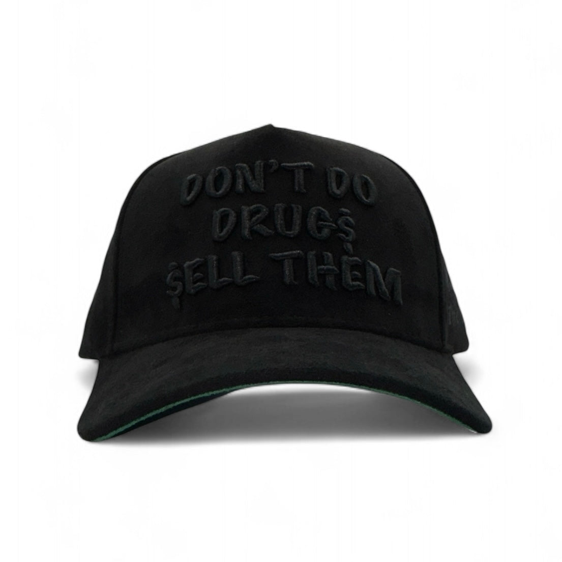 made with premium materials and sharp details. Designed in Los Angeles, the Drugs V2 snapback features an all-black suede exterior, a smooth satin interior, and raised embroidery.